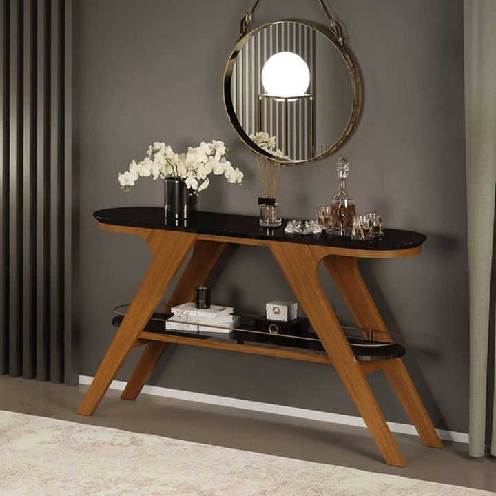 Sobre este producto: Nada combina mejor con muebles elegantes que un aparador exquisito. El aparador DORIS presume de un diseño moderno y sofisticado, que complementa a la perfección tu espacio. Este versátil aparador se puede usar en la entrada, el comedor o la sala de estar, ideal para exhibir decoraciones, arreglos florales y utensilios como bandejas y vasos, sirviendo de apoyo y organizando tu vida diaria. También es ideal para usar con la mesa de centro DORIS, ya que se complementan en diseño. Su tablero de madera biselada de 25 mm de grosor sigue las últimas tendencias de decoración y presenta esquinas redondeadas para mayor seguridad. Otra característica distintiva de este producto son las piezas de metal con recubrimiento epoxi dorado unidas al estante. El aparador está hecho de MDF, derivado de madera reforestada, que es a la vez duradero y ecológico