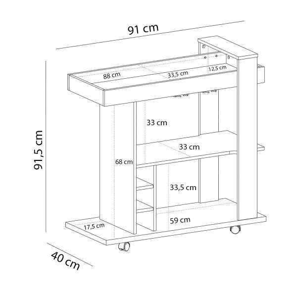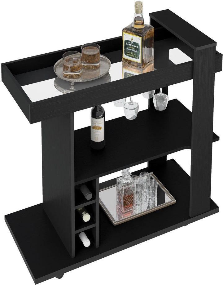 Sobre este producto: El funcional y decorativo Bar Amazonas, para que desfrute de una buena bebida con tranquilidad... Te encantará la comodidad de atender a los invitados y preparar deliciosas bebidas, ya que este producto tiene ruedas y un diseño perfecto para mantener todo organizado. Los nichos para botellas y el percha de copa suspendido garantizan seguridad, además de ofrecer un aspecto más sofisticado. El espejo en la parte superior agrega el encanto final al producto, ¡haciendo tu hogar más liviano y hermoso!