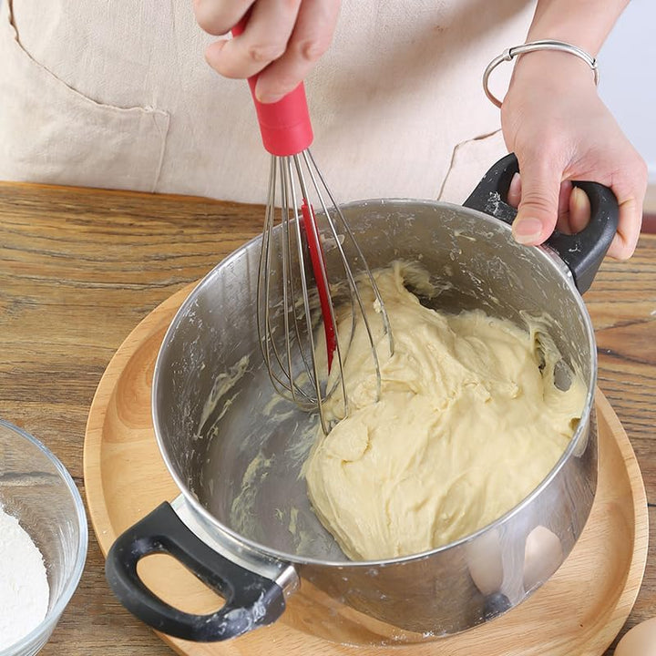 Sobre este producto: es un batidor de alambre de calidad comercial diseñado para panaderos caseros, pasteleros y chefs profesionales. Un utensilio de cocina versátil y una herramienta imprescindible para hornear para mezclar de manera óptima los ingredientes para cocinar y hornear, lo que resulta en un mejor sabor y presentación. No más masas grumosas