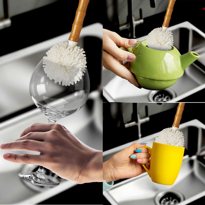 Sobre este producto: Cepillo de vidrio de bambú de HIC Kitchen para limpiar cristalería, bar, jarrones y mucho más. Limpia todo, pero no raya las superficies antiadherentes. El mango más largo llega fácilmente a la cristalería más alta y permite un mayor apalancamiento para tareas de fregado vigorosas. El mango barnizado sella el agua para proteger el bambú del moho. El cepillo para vidrio de HIC es suave pero resistente con puntas de espuma para lavar el vidrio sin rayar la superficie. Económico, reutilizable y resistente al desgaste para más limpiezas con menos desperdicio. Cuelga para facilitar el almacenamiento. Hecho de bambú barnizado, polipropileno y espuma EVA, es seguro para usar en utensilios de cocina antiadherentes. El barniz protege el mango de bambú contra el moho. Seguro para usar en utensilios de cocina antiadherentes. Enjuague entre usos y seque al aire.