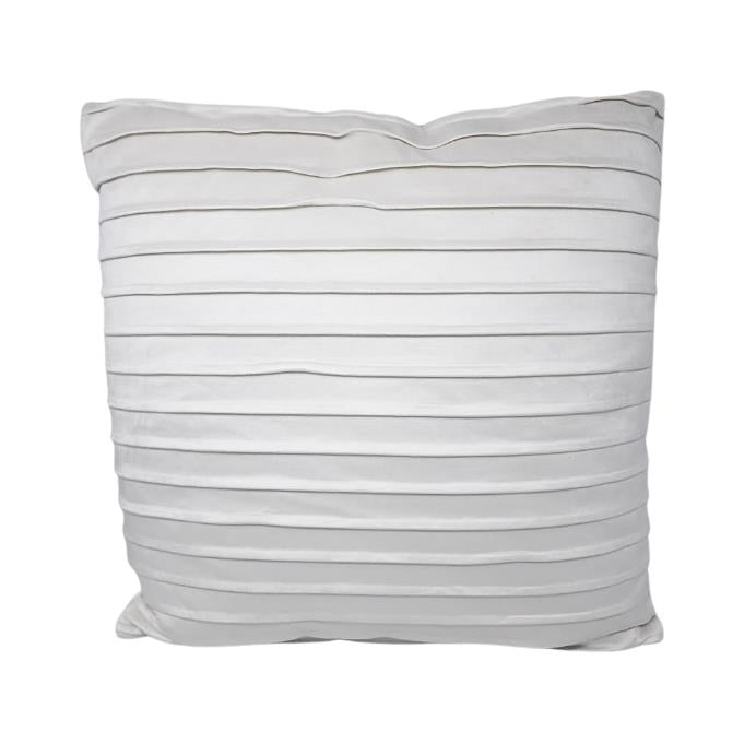 Sobre este producto: Un susurro de textura sobre un lienzo de serenidad. Este cojín blanco con pliegues suaves y horizontales transforma tu ambiente con elegancia tranquila, ideal para quienes buscan armonía sin resignar personalidad.