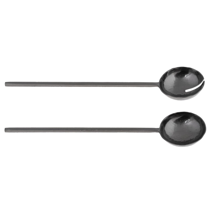 Sobre este producto: Estas cucharas para ensalada de acero inoxidable hechas a mano son una forma moderna y original de servir tus ensaladas favoritas. Los mangos estrechos y la textura martillada forjada a mano dan un bello acabado a este sencillo utensilio. Sirve ensaladas, pastas, verduras mixtas y mucho más con estas cucharas profundas que permiten recoger y servir fácilmente.
