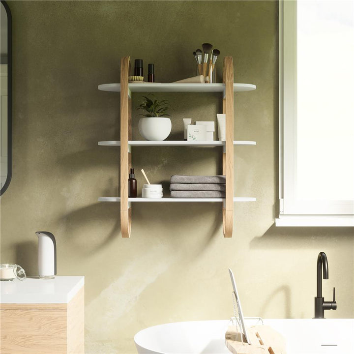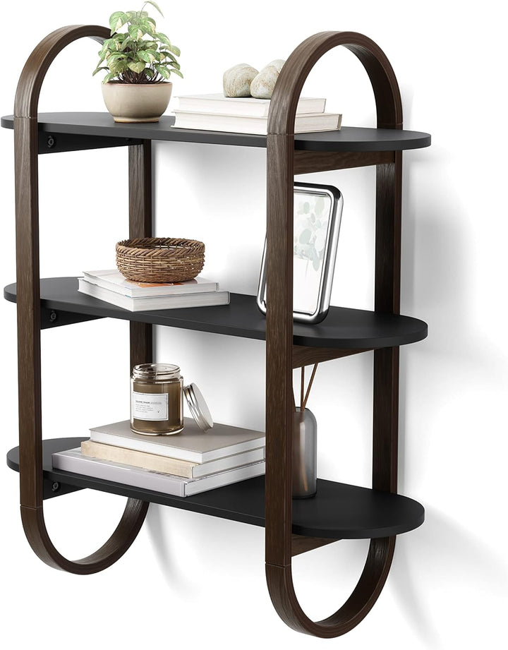 Sobre este producto: Estante de pared decorativo y que ahorra espacio: Bellwood es un estante de pared moderno y versátil, con tres niveles para almacenamiento, decoración, plantas y más. Bellwood se puede utilizar en tu sala de estar, oficina en casa, dormitorio, baño y mucho más. Este moderno estante de pared cuenta con tres estantes en forma de píldora con detalles curvos de Madera curva; capacidad de peso total de 45 libras. (44.1 lbs).