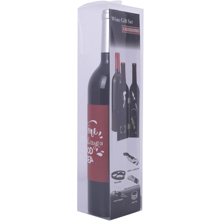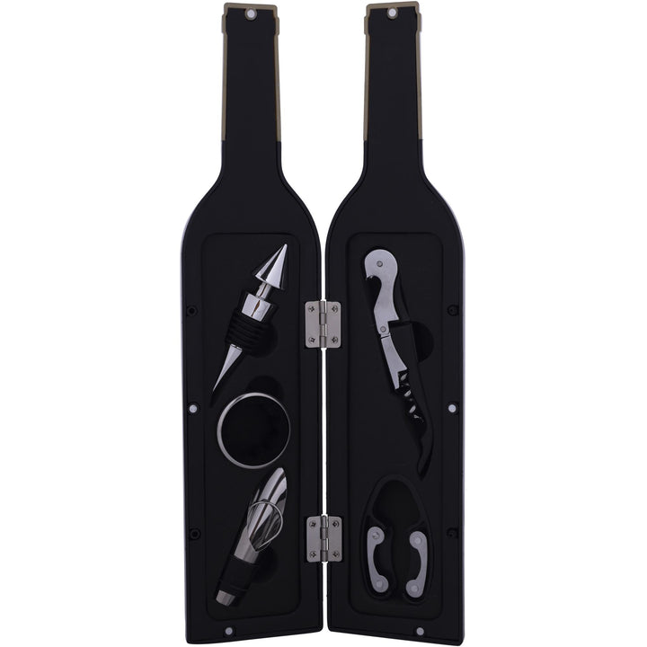 Sobre este producto: Haz de cada copa de vino una experiencia completa con este elegante set de accesorios para vino. Presentado en un original estuche con forma de botella, este kit es perfecto para regalar o lucir en tu propia cava o cocina.