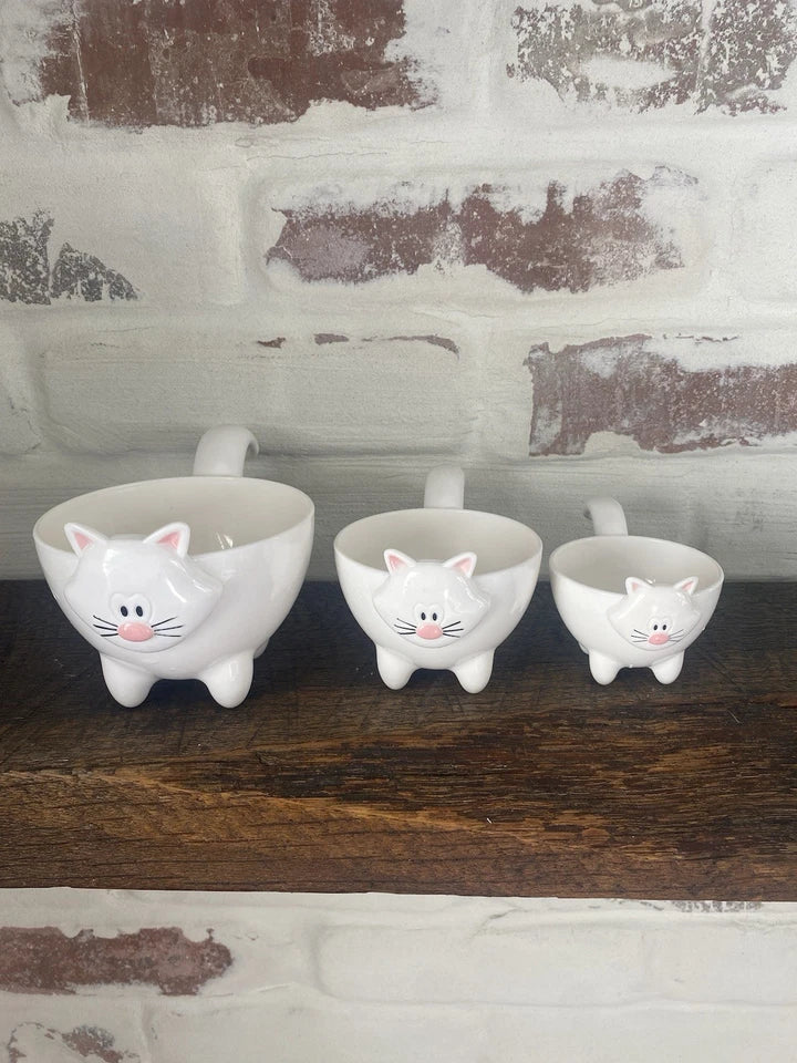 Sobre este producto: Juego de tazas medidoras Joies Meow Cat Reparte con precisión los ingredientes secos y líquidos para cocinar y hornear,Hecho de plástico libre de BPA; El juego incluye 3 medidas estándar de cocina en medidas de 1/4, 1/2 y 1 taza,Las medidas están claramente marcadas en cada taza medidora para facilitar su identificación; Ideal para hornear y cocinar con niños.Lavar a mano con agua tibia y jabón