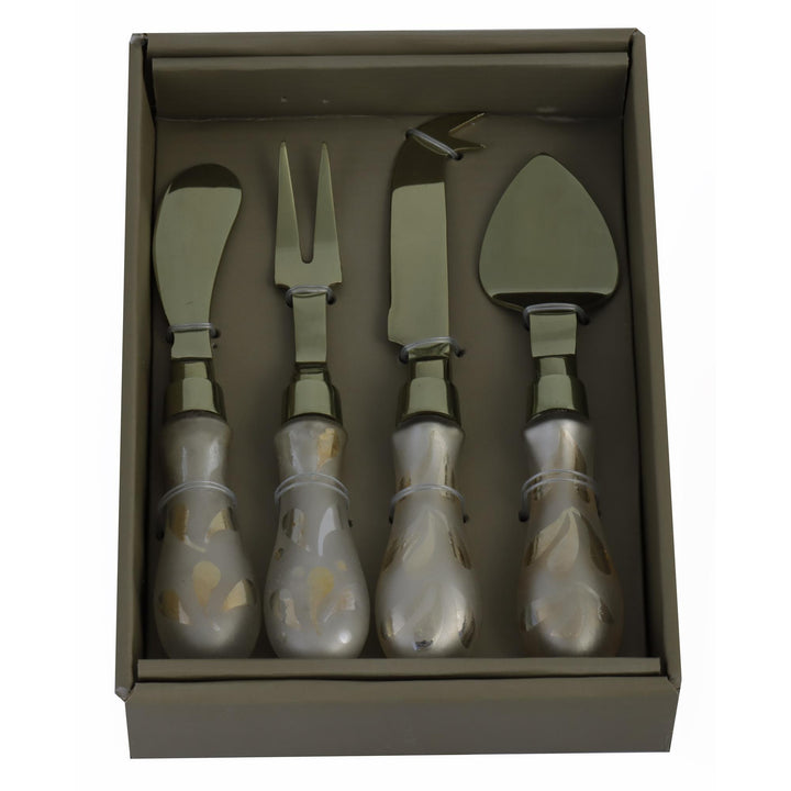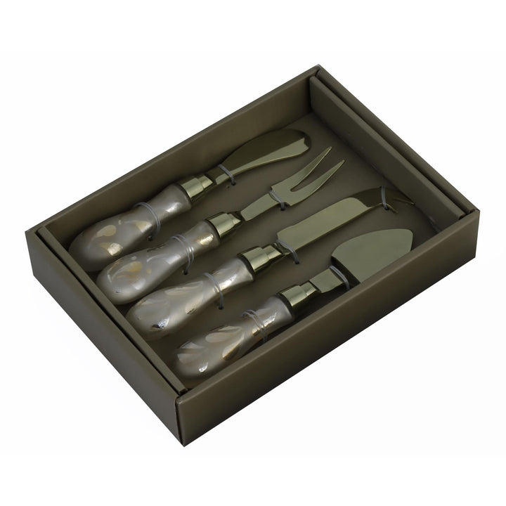 Sobre este producto: Convierte cada tabla de quesos en una experiencia gourmet con este exclusivo set de cuchillos para queso de 4 piezas. Diseñado con mangos decorativos y hojas metálicas elegantes, este set combina estilo sofisticado y precisión funcional, ideal para amantes del buen comer y anfitriones exigentes. Incluye:1 cuchillo para quesos duros,1 cuchillo para quesos blandos,1 tenedor de servir, 1 pala para untar.
