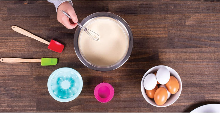 Sobre este producto: El juego de horneado para niños de 14 piezas de Mrs. Anderson incluye todos los elementos esenciales de tamaño perfecto necesarios para un comienzo positivo en la repostería con niños y aspirantes Incluye 1 rodillo, 6 tazas para muffins, 1 sartén acanalada, 2 espátulas, 3 cortadores de galletas (estrella, corazón y redondo estriado) y 1 mini batidor de acero inoxidable