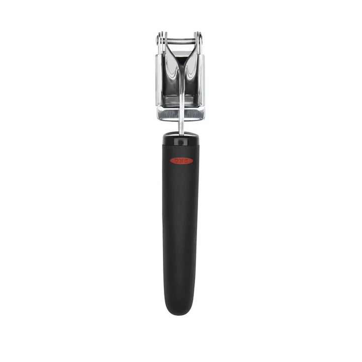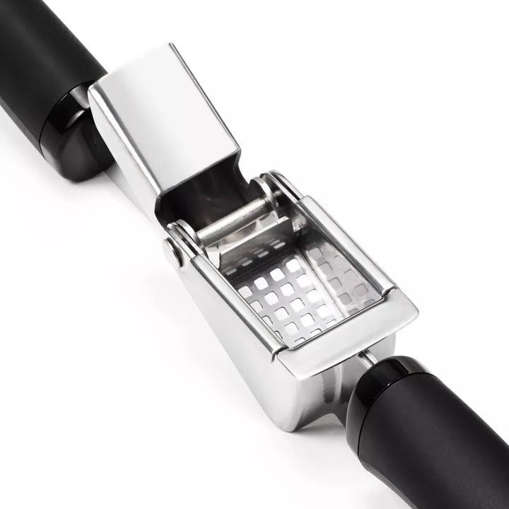 Sobre este producto: Proteja el olor persistente de sus dedos con la prensa de ajos OXO SoftWorks. Una cámara de ajo de gran capacidad, la prensa de ajo tritura el ajo con un apretón. El eficiente patrón de agujeros empuja fácilmente el ajo y un limpiador incorporado permite una fácil limpieza. Simplemente voltea los mangos para limpiar el exceso de ajo.