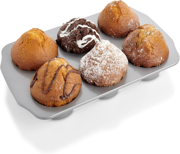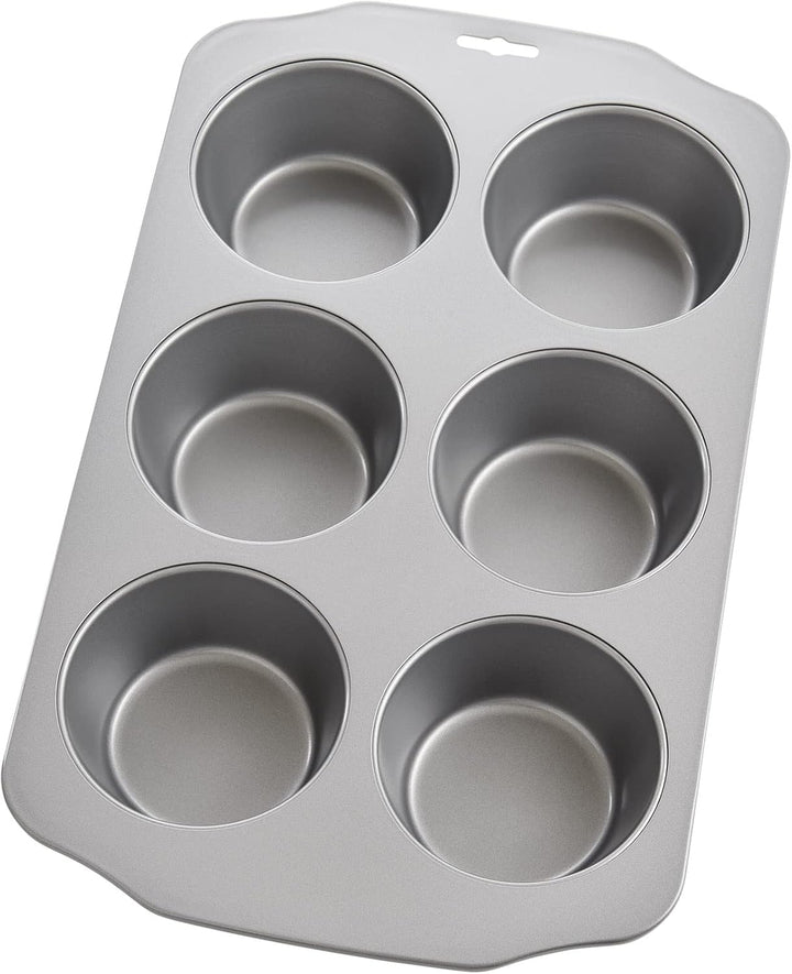 Sobre este producto: El molde para muffins jumbo antiadherente de 6 tazas de la Sra. Anderson se hornea de manera uniforme y libera los alimentos sin que se peguen,acero al carbono europeo; recubrimiento antiadherente premium sin PFOA; resistente al calor hasta 450 grados Fahrenheit; Mide 13 x 8.75 x 2 pulgadas,Rinde 6 muffins gigantes, cupcakes, tartas de queso individuales, pasteles de café, popovers y más,Instrucciones incluidas; utilizar herramientas de madera o nylon; nunca corte en la sartén; Lavar a mano con agua tibia y jabón y secar bien