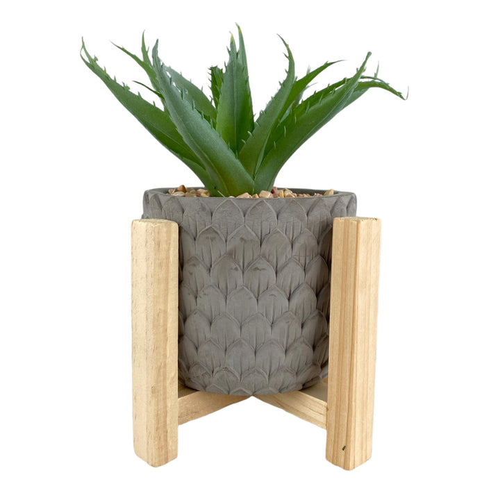 Sobre este producto: Esta maceta texturizada de acabado gris con cactus combina una estética contemporánea con la calidez de una base de madera clara. Su patrón realzado aporta movimiento visual, mientras que la estructura elevada permite una presentación impecable, transforma cualquier rincón en un detalle decorativo sofisticado. Ideal para salones, escritorios o terrazas cubiertas.