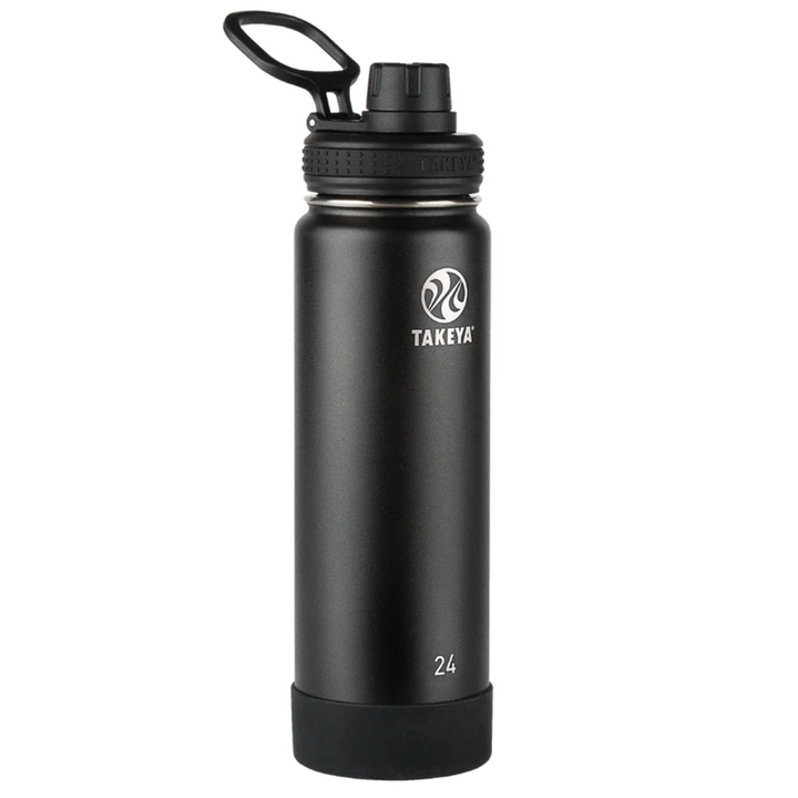 Sobre este producto: La botella de agua de acero inoxidable Takeya Actives es una botella de agua deportiva elegante y resistente con un acabado con recubrimiento en polvo. El exclusivo aislamiento de doble pared de la botella de agua de 24 onzas mantiene las bebidas calientes (12 horas) y frías (24 horas)