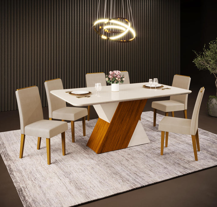 Sobre este producto: La Mesa Rubi es una gran opción para brindar comodidad y belleza a su comedor. Con un diseño atrevido en piezas diagonales, esta mesa está bien alineada con lo último en diseño contemporáneo.