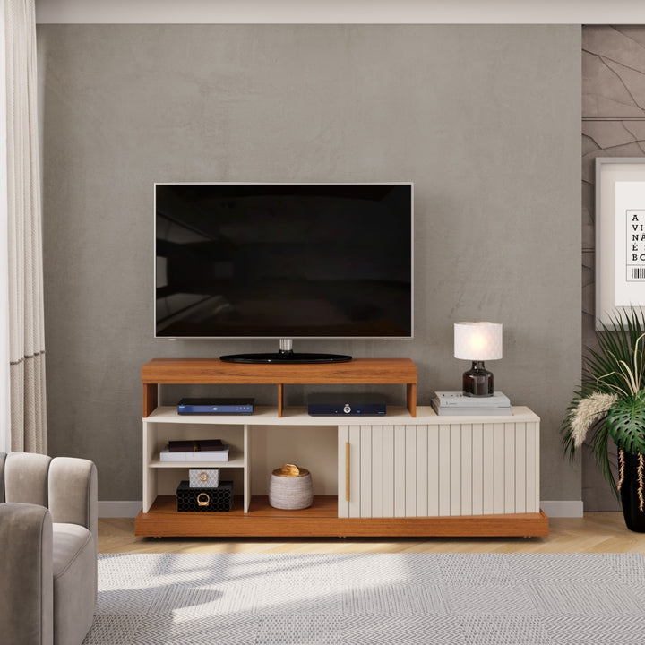 Sobre este producto: Scala Rack es una excelente opción para agregar belleza a su hogar. Con una elegante estética curva y una encantadora puerta con cuentas, este estante está en línea con lo último en diseño, Ideal para ambientes compactos o medianos, este estante puede ser la estrella de tu salón. Para obtener el mejor entretenimiento posible, este producto fue desarrollado para soportar televisores de hasta 49